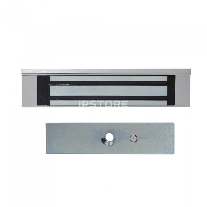 Замок поставляється в комплекті з двох складових: блоку з електромагнітом та металевої планки з високою магнітною проникністю. Частина з електромагнітом встановлюється на дверну коробку, а відповідна планка – на двері.