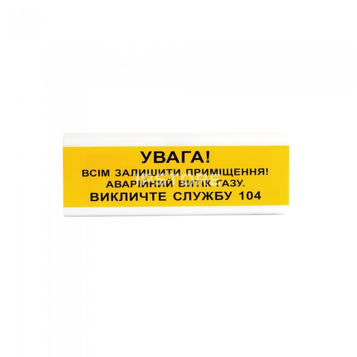 Оповіщувач світлозвуковий ОСЗ-11 «Витік газу» для встановлення всередині приміщень. Підключається до охоронних і пожежних ППК. Табло оповіщувача освітлюється за допомогою SMD світлодіодів, що робить напис видимим в темни...