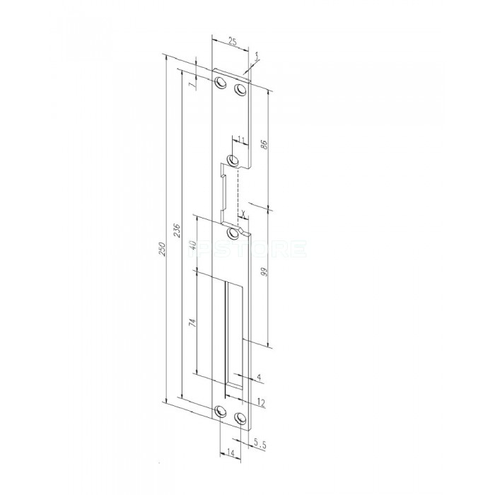- Размеры (Высота х Ширина х Толщина), мм: 250 х 25 х 3.