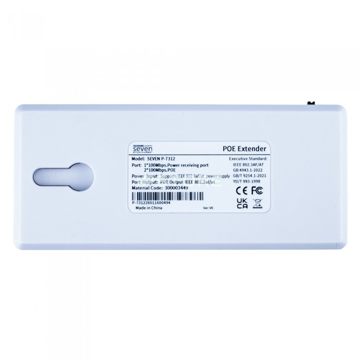 Подовжувач SEVEN P-7312 - надійне та ефективне рішення для збільшення довжини лінії передачі даних та живлення за стандартом PoE. Його сумісність із різними стандартами, простота установки роблять його ідеальним вибором для різних умов експлуатації. Незалежно від того, чи потрібно вам встановити IP-камеру або інше мережеве обладнання на великій відстані від джерела живлення, SEVEN P-7312 забезпечить стабільну та надійну роботу вашої мережі.
