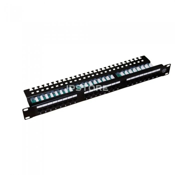 Патч-панель 24 порта FTP кат. 5Е 19" PP-KFSTP24 використовується для створення точки фіксованої комутаціїБренд: HypernetХарактеристики Кількість портів: 24 Екранування: є Категорія: Кат. 5е передбачає швидкість даних до 1000 Мбіт/с за умови використання в парі з патч-панеллю звитої пари тієї ж категорії Стандарт: 19" (19-ти дюймові) в комутаційні шафи або стійки Тип роз'ємів: RJ-45 Вбудований організатор кабелю: є Монтажна висота: 1U..