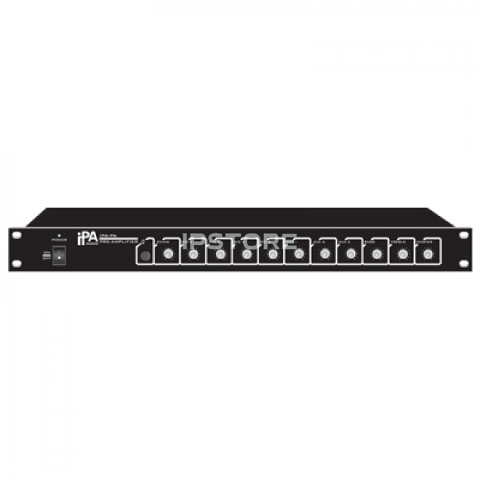 Перед підсилювач IPA-PA з 5-ю збалансованими мікрофонними входами, 3-ма аудіовходами і з одним входом ЕМС (пріоритетним) використовується в системах озвучування та оповіщення для підключення декількох джерел звуку і отримання єдиного сигналу на виході системи.