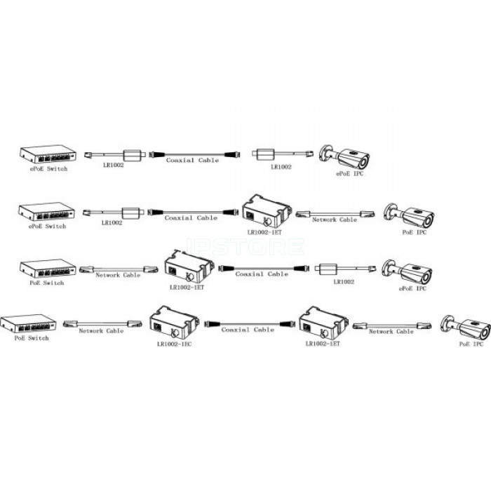 Пристрій для передавання IP відеосигналу по коаксіальному кабелю RG59.Компанія-виробник: DahuaТЕХНІЧНІ ХАРАКТЕРИСТИКИФункціональний порт: 1 х 10/100 Мбіт/с Base-TX 1 х BNCПропускна здатність передачі: Коаксіальний кабель...