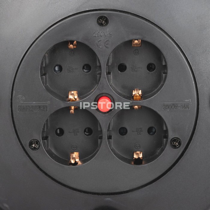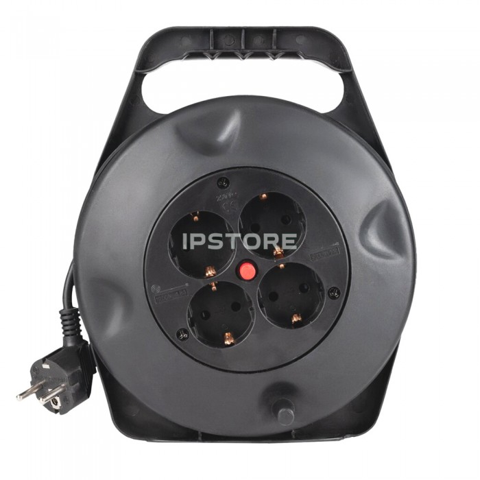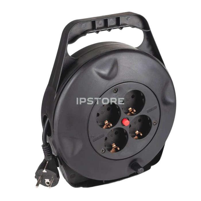 Подовжувач на котушці LP 15м (ПВС 3*0.75), 4 гнізда із заземлювальним контактом до 2.2 кВт