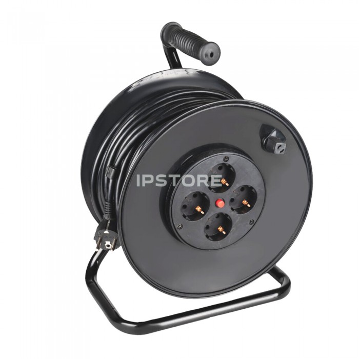 Подовжувач на котушці LP 50м (ПВС 3*1,5), 4 гнізда із заземлювальним контактом до 3.5 кВт