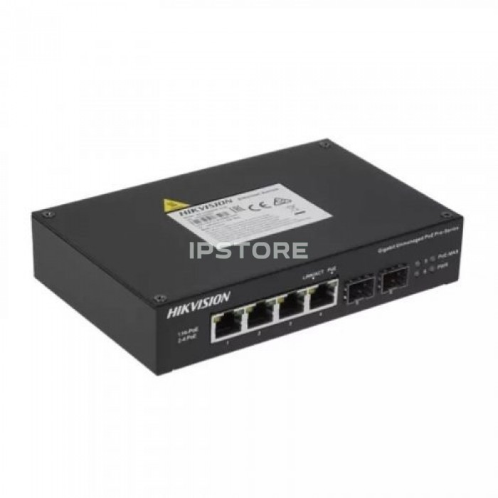 Неуправляемый гигабитный PoE коммутатор Hikvision DS-3T0506HP-E/HS с 4 портами PoE
