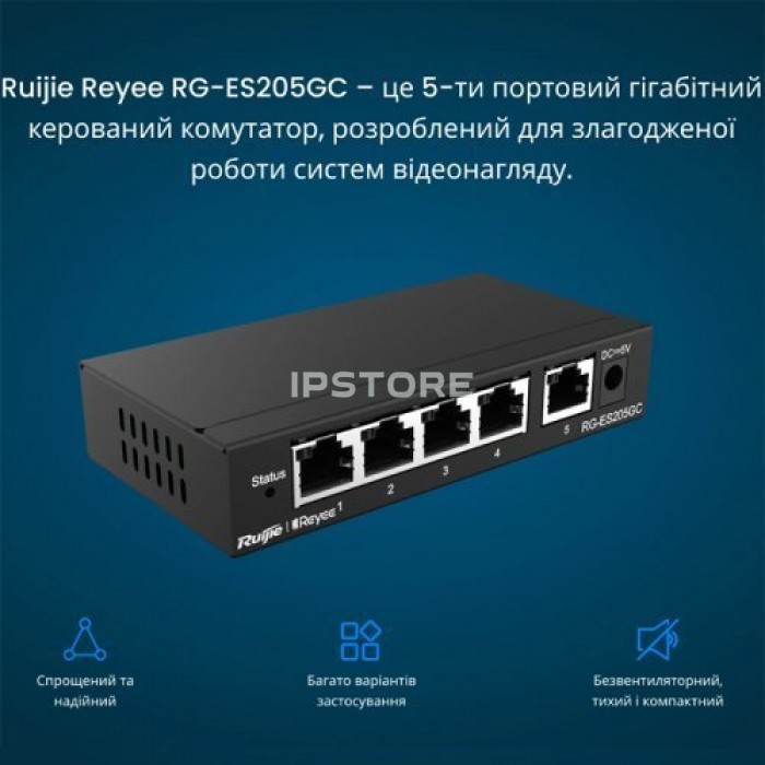 РоЕ-коммутатор Ruijie Reyee RG-ES205GC 5-портовый гигабитный интеллектуальный