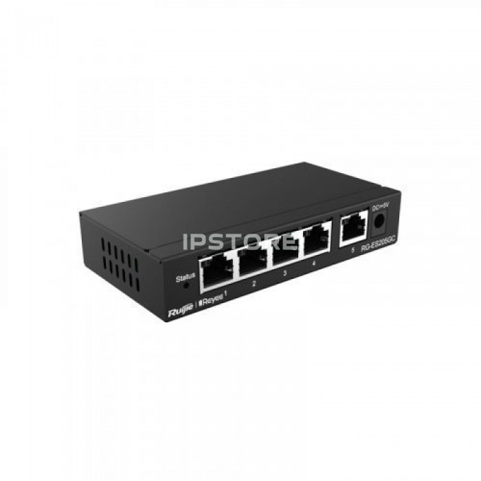 Ruijie RG-ES205GC – это 5-портовый гигабитный интеллектуальный коммутатор, предназначенный для использования в небольших офисных, квартирных или домашних сетях. Коммутатор оснащен пятью портами 10/100/1000 Мбит/с.