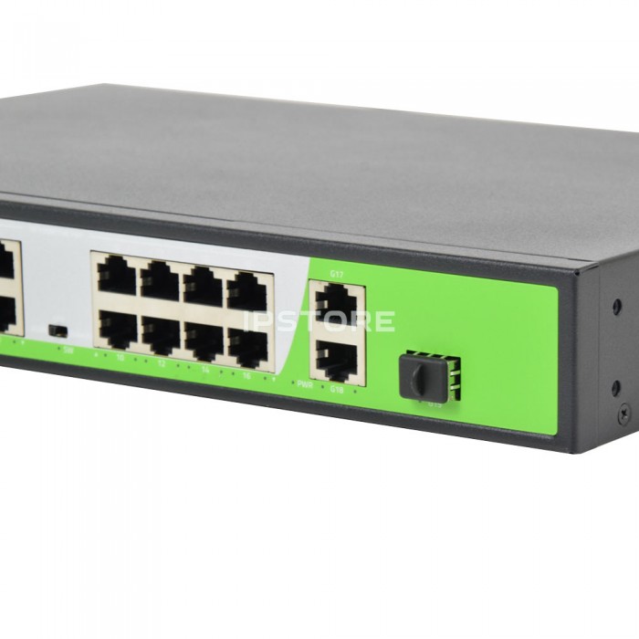 Порти: 16*10/100M RJ-45(POE)+2*10/100/1000M RJ-45+1*1000 SFP
