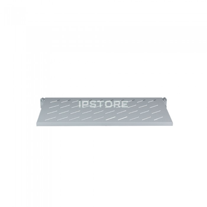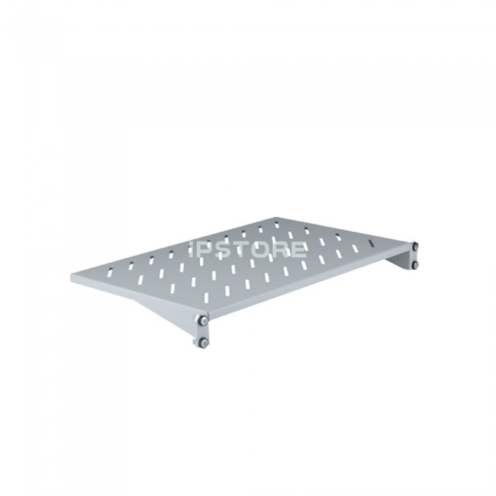 Виріб виготовлено з міцної листової сталі завтовшки 1,2 мм, що гарантує довговічність і стійкість до механічних пошкоджень. Полиця підтримує розподілене статичне навантаження до 15 кг, що робить її придатною для розміщення різного обладнання. Додаткова перфорація по всій поверхні полиці сприяє ефективній вентиляції, що дозволяє повітрю вільно циркулювати та запобігає перегріванню встановленого обладнання.