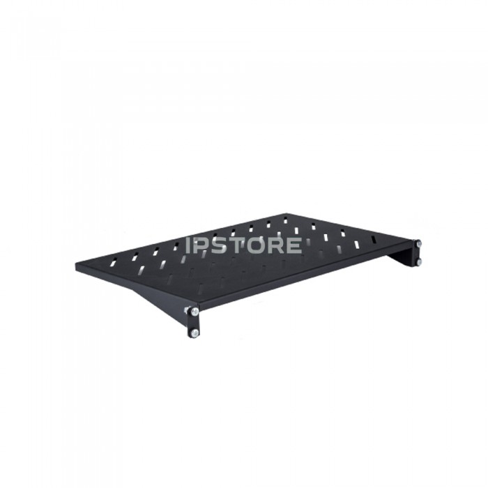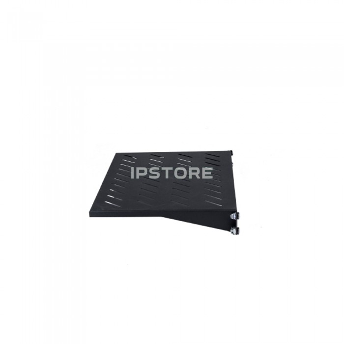 Виріб виготовлено з міцної листової сталі завтовшки 1,2 мм, що гарантує довговічність і стійкість до механічних пошкоджень. Полиця підтримує розподілене статичне навантаження до 15 кг, що робить її придатною для розміщення різного обладнання. Додаткова перфорація по всій поверхні полиці сприяє ефективній вентиляції, що дозволяє повітрю вільно циркулювати та запобігає перегріванню встановленого обладнання.
