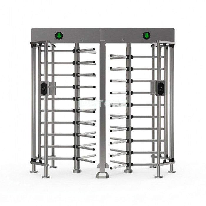 Турнікет повноростовий Weilai WT-FHT3300D двопрохідний призначений для організації контрольованого проходу на об'єктах із великим потоком відвідувачів. Конструкція включає два незалежні проходи, що дозволяє одночасно організувати рух людей у різних напрямках і підвищити пропускну здатність вхідної групи. Повноростовий роторний механізм перекриває прохід по всій висоті та запобігає спробам обходу турнікета.