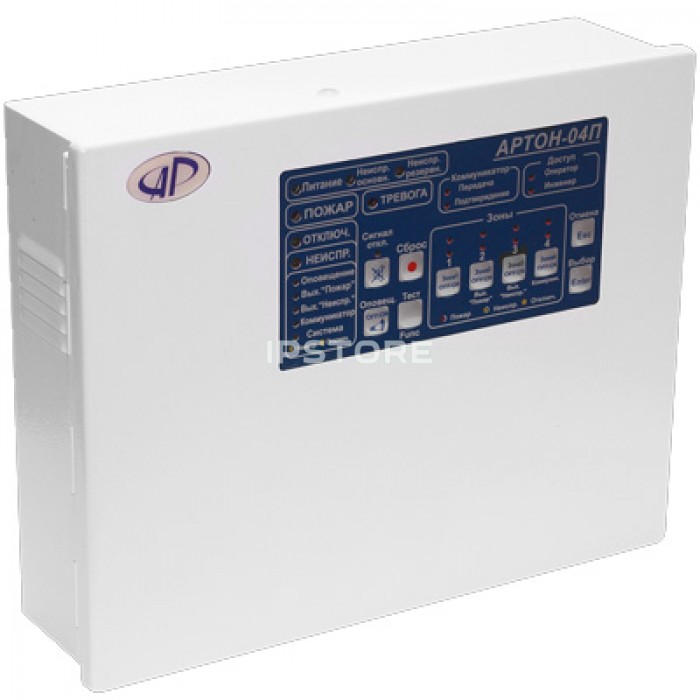 ППК "АРТОН-04П" призначений для організації централізованої і автономної охорони різних об'єктів від пожеж, шляхом цілодобового контролю стану до 4-х шлейфів пожежної сигналізації. Середнє спрацювання на відмову приладу не менш 40000 годин. Габаритні розміри: не більше 230х280х90 мм. Маса: не більше 3,5 кг.