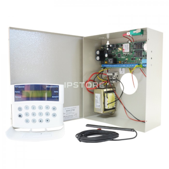 4-зонний ППК з виносної РКІ клавіатурою М8588К, можливість розширення за допомогою модулів МР8108 до 64 зон. Додзвонитися комунікатор формату Contact ID. Вбудований модуль GSM.
