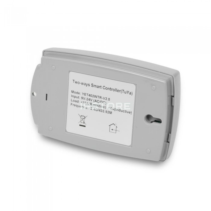 Приймач підтримує радіочастотний зв'язок 433.92 МГц і оснащений двома незалежними релейними каналами, що дозволяє реалізувати пряме та зворотне обертання двигуна, перемикання режимів роботи та керування різним обладнанням. Інтеграція з мобільним додатком Tuya Smart через Wi‑Fi забезпечує віддалений доступ, налаштування та керування пристроєм зі смартфона.