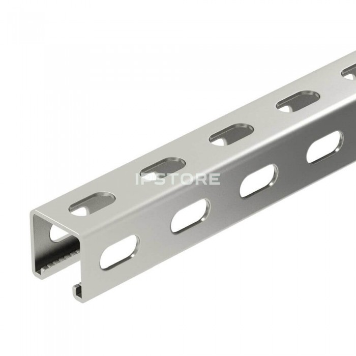 Надміцна C-подібна профільна рейка з перфорованою бічною стінкою, призначена для індивідуального встановлення опорних конструкцій, наприклад, кабельних лотків, або для використання як панель для розподільних шаф. Бренд: ...
