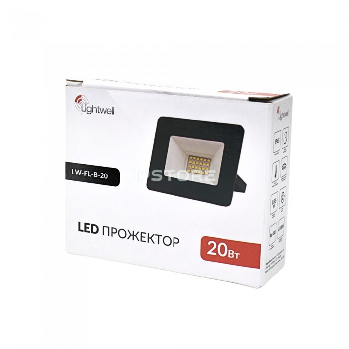 Прожектор світлодіодний Lightwell LW-FL-B-20 20 W призначений для зовнішнього та внутрішнього освітлення об'єктів та приміщень: вітрин, банерів, бордів, вивісок, малих архітектурних форм, точкового підсвічування об'єктів, освітлення невеликих приміщень тощо. Світлодіодні прожектори є ефективною альтернативою традиційним джерелам світла. Основною перевагою світлодіодного прожектора є висока світловіддача при малому споживанні електричної енергії.