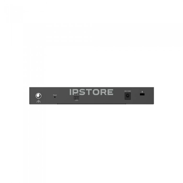Комутатор має 10 портів RJ45, з яких 8 портів підтримують стандарт IEEE 802.3af/at PoE+ для подачі живлення до 30 Вт на кожен порт. Крім того, комутатор підтримує функцію керування бюджетом потужності, яка автоматично керує споживанням енергії, запобігаючи перевантаженню і перегріванню портів.