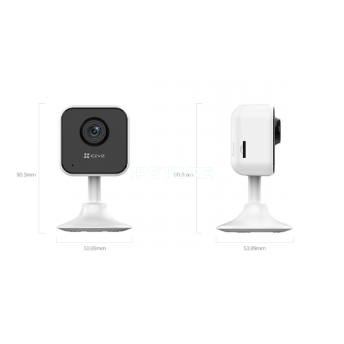 Внутрішня IP-камера EZVIZ CS-H1C (1080P) з Wi-Fi, роздільною здатністю відео 2 Мп, ІЧ-підсвічуванням і підтримкою карт пам'яті microSD до 512 ГБ, з вбудованим мікрофоном і динаміком. Керування камерою здійснюється за допомогою застосунку для мобільного телефону (iOS | Android). Підключення пристрою до мережі інтернет через Wi-Fi.