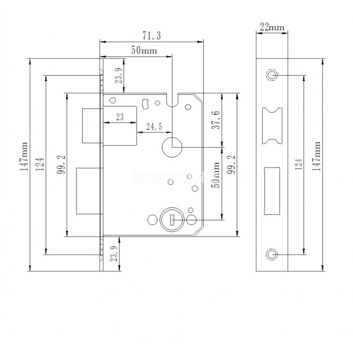 - Врезная часть: Вх147 мм. Шх22 мм. Гх71,3 мм.