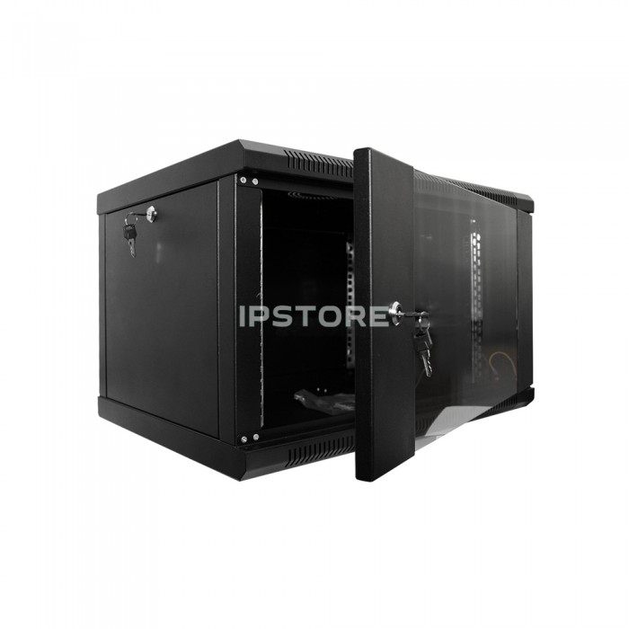 Шафа серверна SteelNet 12U 600 x 450 для мережевого обладнання (скло, чорний)
