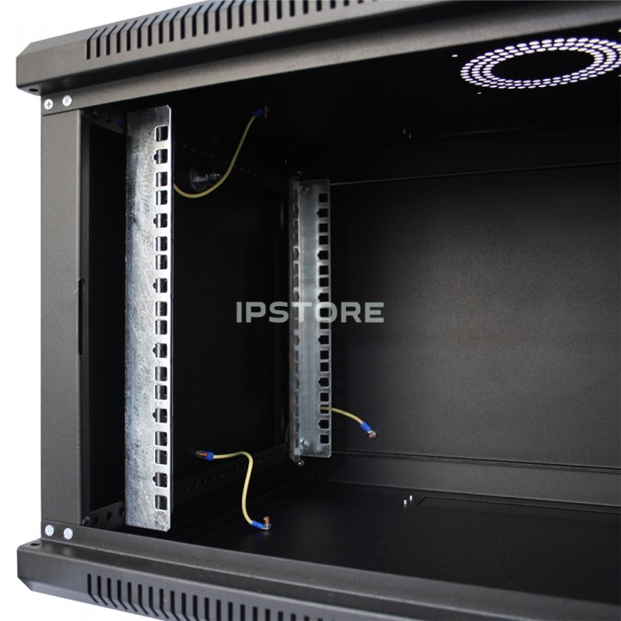 Конструкція шафи складається з даху, нижньої частини, двох бічних рамок зі змінними панелями, передніх дверей, задньої панелі та юнітових стійок. Для зручності монтажу на стіну і надійного кріплення в конструкції передбачено 4 отвори в тильній частині шафи. Передні двері фіксуються поворотно-притискним замком.