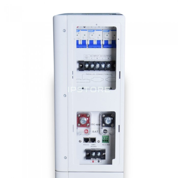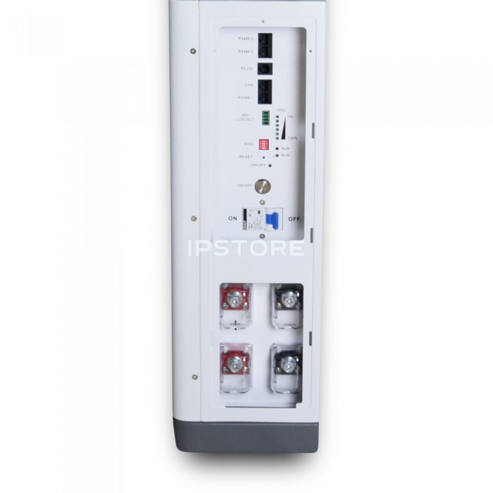 Номінальна напруга батареї становить 51.2 В, а ємність — 100 А·год, що забезпечує енергоємність 5.12 кВт·год. Такий рівень енергії дозволяє забезпечувати живлення побутових або комерційних навантажень протягом тривалого часу залежно від споживання.