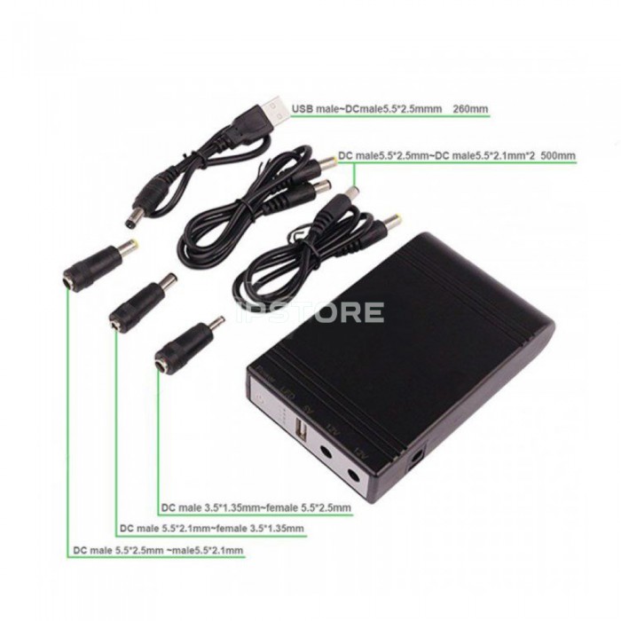 Mini UPS можна використовувати як звичайний "Powerbank" тільки з великою кількістю інтерфейсів, що тільки підвищують привабливість пристрою. Мініатюрний розмір 116 x 73 x 24 мм і велика ємність Li-ion батареї 10500 mAh підвищують конкурентну перевагу даного виробу над подібними які є на ринку.