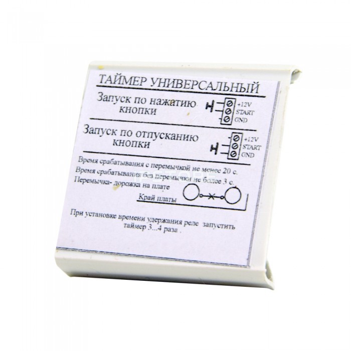Таймер імпульсів використовується при установці електрозамків без панелі управління, або в тих випадках, коли в самому замку немає вбудованого таймера. Таймер потрібен для обмеження довжини імпульсу керуючого сигналу. Даний таймер імпульсів дозволяє регулювати час відімкнення від 0,3с до 60с. Такий діапазон дає можливість використовувати таймер при підключенні і інших елементів системи контролю доступу та охоронної сигналізації (сирени, датчика відкриття...)