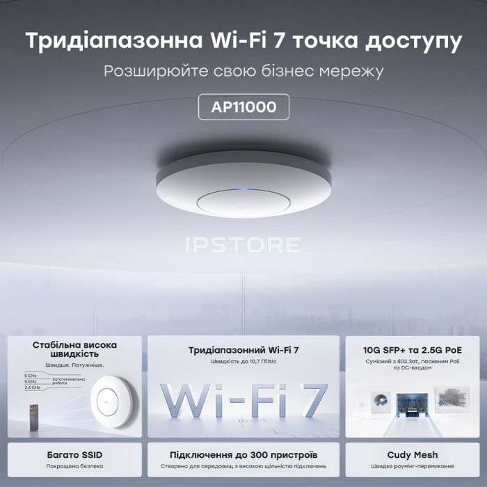 Точка доступа WiFi 7 2.5G 10G SFP+ Cudy AP11000 с поддержкой Mesh трехдиапазонная BE11000