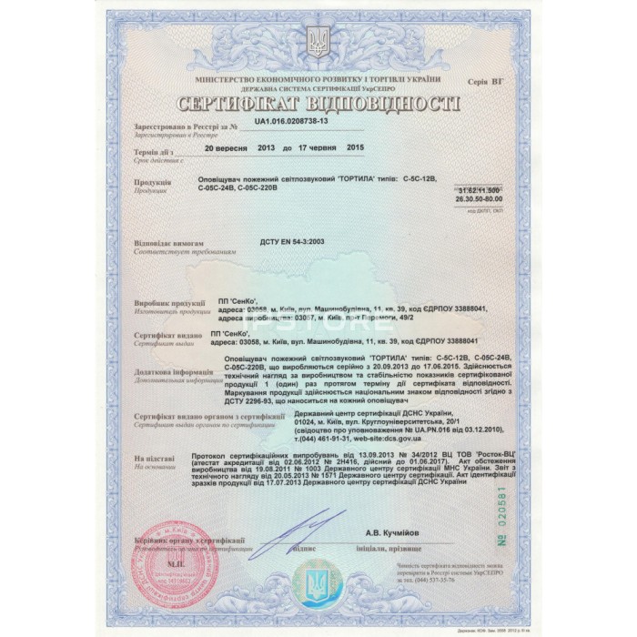Відповідність стандартам: EN 50130-4, EN 50130-5, EN 50131-1, EN 50131-4, EN 50131-5-3