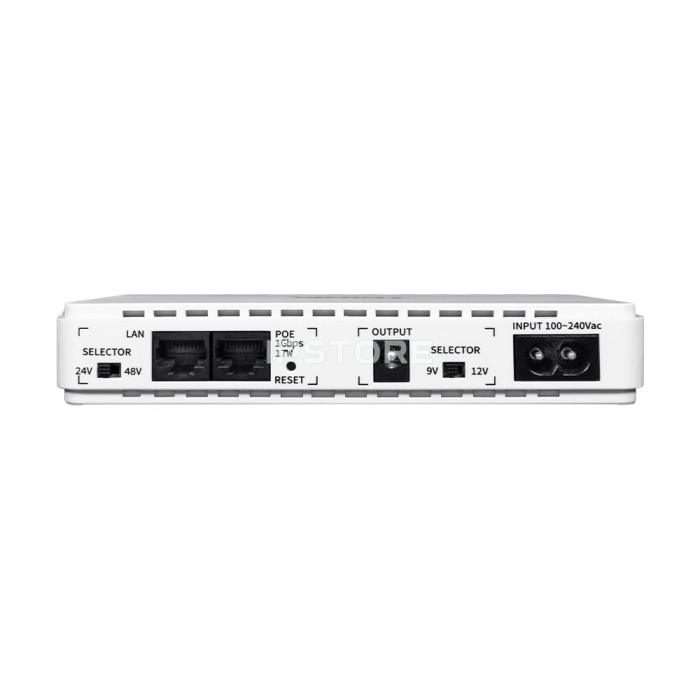 - Выходные интерфейсы USB, DC, PoE со скоростью 1 Гбит/с, выходное напряжение 5 В + 9/12 В – переключается + PoE 24/48 В – переключается. Выходное напряжение и ток каждого выхода: USB: 5В/2А, DC: 9В/1А, 12В/1А, PoE: 24В/0.7А, 48В/0.35А