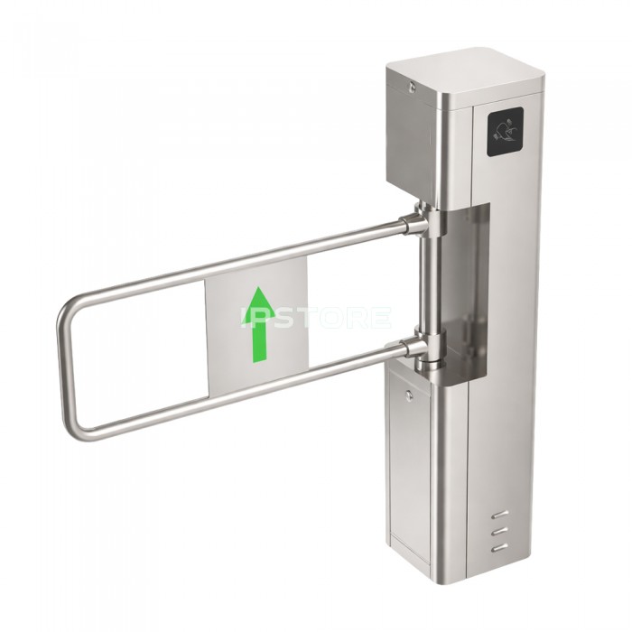 Турнікет оснащений металевою поворотною стулкою з шириною проходу 700 мм і безщітковим приводом потужністю 40 Вт, який забезпечує стабільну та плавну роботу механізму. Керування роботою пристрою здійснюється за допомогою контролера Brushless Board. Конструкція розрахована на інтеграцію із системами контролю доступу та може використовуватися разом із різними пристроями ідентифікації.