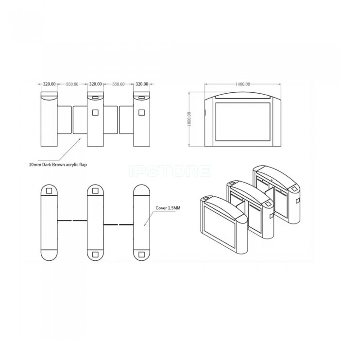 - Пропускные калитки откидываются при исчезновении питания, обеспечивая безопасный и легкий вход/выход.