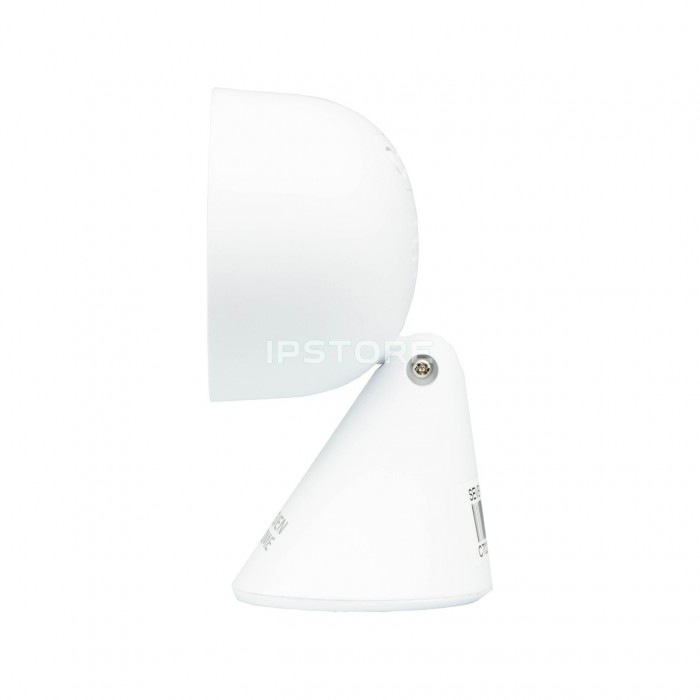 Стильный и современный дизайн корпуса камеры подойдет для любого интерьера. Камера выполнена из качественного белого пластика с глянцевой черной вставкой на передней панели, прикрывающей инфракрасную подсветку. Также здесь расположен объектив и индикатор состояния камеры. На задней панели расположен динамик под перфорацией корпуса, кнопка сброса видеокамеры и разъем питания USB Type C. Слот под карту памяти находится на левом торце камеры.