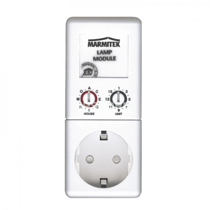 Управляемый выключатель LM-12 с регулятором яркости света. Предназначен для ламп накаливания 220 В, 50 Гц мощностью от 40 Вт до 300 Вт. Исполняет команды X-10: "включить", "выключить", "увеличить яркость", "уменьшить яр...