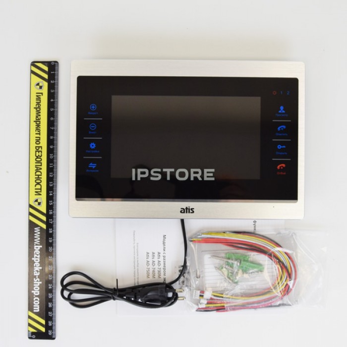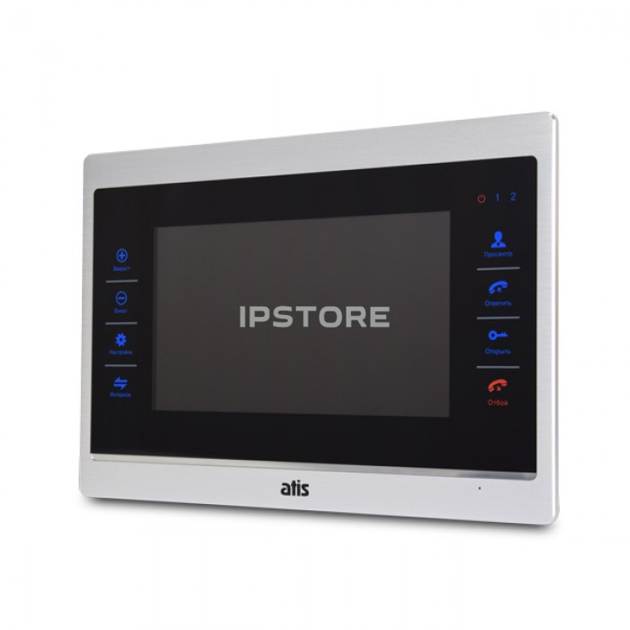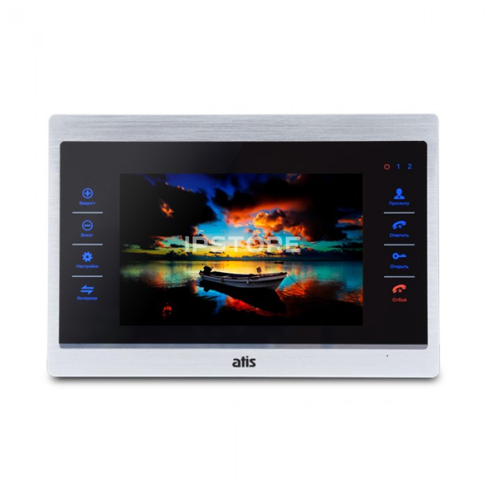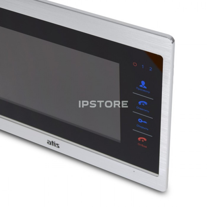 Відеодомофон ATIS AD-740M S-Black з кольоровим 7 дюймовим TFT-екраном, сенсорними кнопками, можливістю підключення 2 панелей виклику, 2 аналогових відеокамер, 2 датчиків тривоги, 3 відеодомофонів і 1 додаткового монітора...