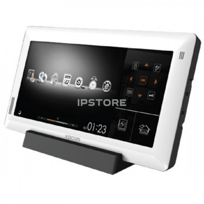 Відеодомофон кольоровий, 10" TFT, PAL/NTSC, 4 канали з режимом квадратора (4 панелі виклику або 2 відеопанелі + 2 відеокамери). Розмова по гучному зв'язку. Можливість підключення SD карти до 32 Gb. Вбудований реєстратор (запис по руху, тривозі, за розкладом або після натискання на кнопку виклику). Функції розумного будинку (управління домашньою автоматикою, охоронною сигналізацією, освітленням, жалюзі і газовим клапаном). Сенсорний екран, функція відображення цифрового фотоальбому, календаря, годин та ін. Кнопка відкриття замку, регулювання гучності, яскравості. Можливість підключення двох трубок KDP-602G. Габарити: 355х185х40мм. Колір: білий.