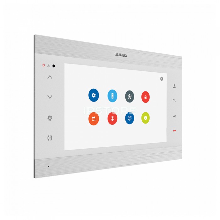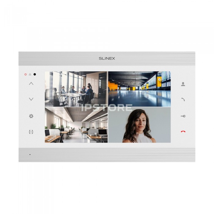 - Домофон Slinex SL-10N Cloud (silver+white) оснащений кольоровим IPS-екраном з діагоналлю 10 дюймів і роздільною здатністю 1024*600 пікселів.