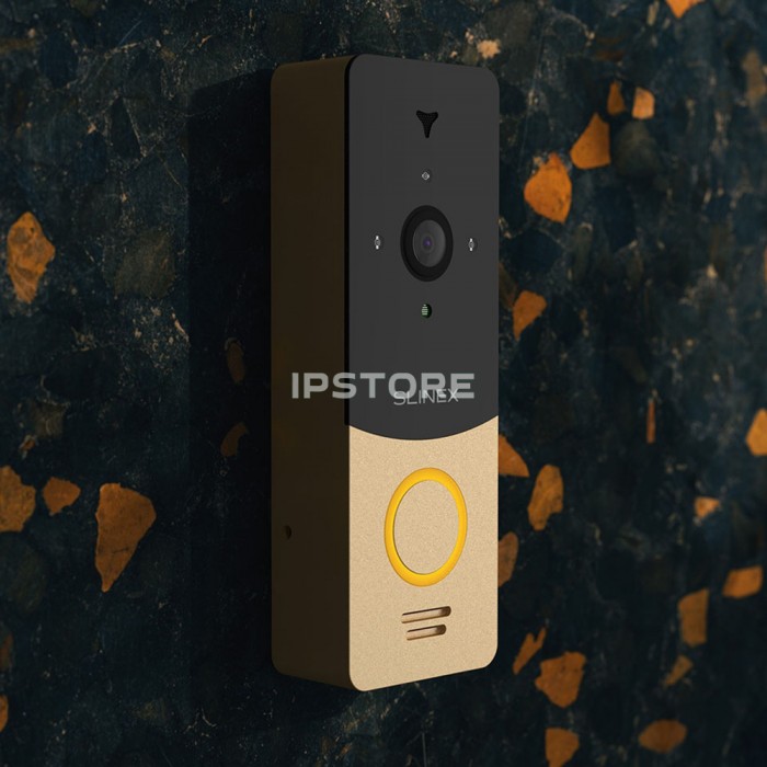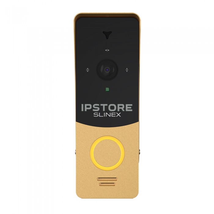 Вологозахисний корпус відеопанелі Slinex ML-20IP виконано з металу з пластиковими вставками. Колір корпусу чорний з золотом.