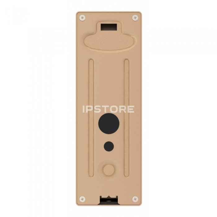 Кольорова антивандальна відеопанель з камерою 1000ТВЛ та можливістю записувати відео на реєстратор за датчиком руху. Кут огляду 120 ° по горизонталі. Чутливість 0.01Lux. Дальність ІЧ-підсвічування 1.5м. Метал із пластиковими вставками. Колір золото з чорним. Розмір: 130×45×25 мм