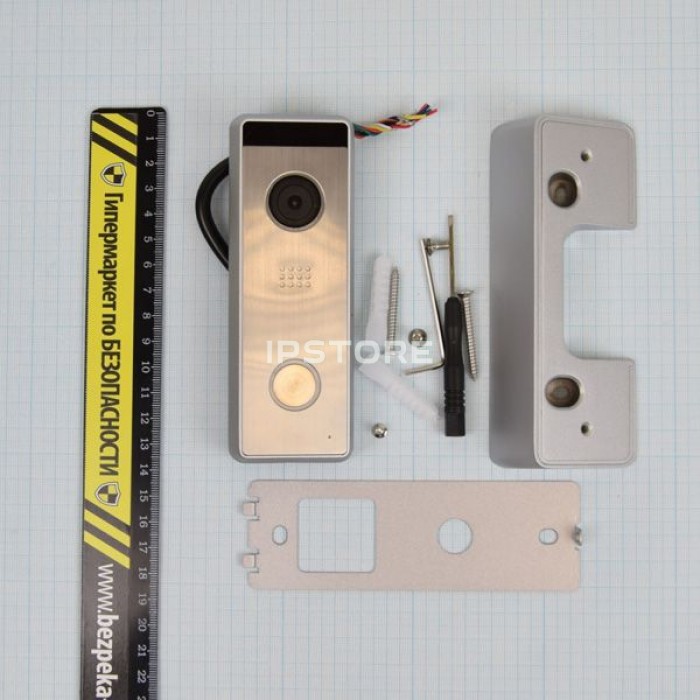 видеопанель, настенный кронштейн, уголок (30°), комплект крепежных элементов, инструкция