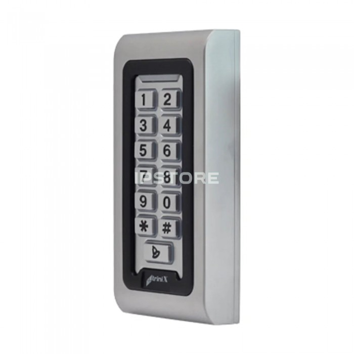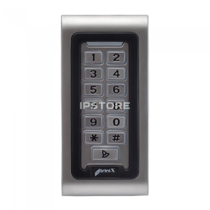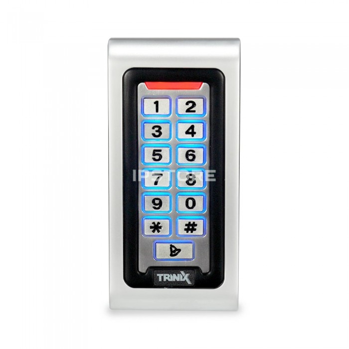 Вулична, антивандальна, водонепроникна кодова клавіатура з WiFi, з можливістю працювати через мобільний застосунок Tuya Smart Trinix TRK-800EW з металевими кнопками та вбудованим зчитувачем карт та брелоків стандарту EM-Marine (125 кГц), а також контролером на одне реле для використання у системах контролю доступу. Підтримується декілька способів доступу: за допомогою коду доступу / зчитування карти / через мобільний застосунок Tuya Smart. Металевий антивандальний водонепроникний корпус, клас захисту IP68, підходить для вуличного встановлення.