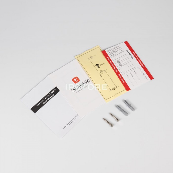 - Вбудований WiFi, можливе керування зі смартфону за допомогою мобільного застосунку Tuya Smart: дистанційне відімкнення замка, додавання коду доступу, RFID-карти або брелока.