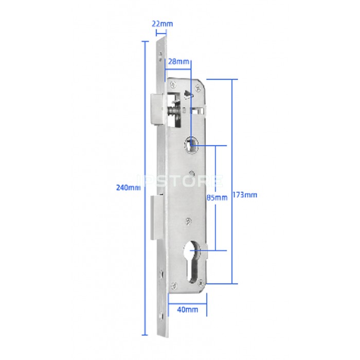 Врезная часть: Вх240 мм Гх52 мм Шх22 мм, backset 28 мм.