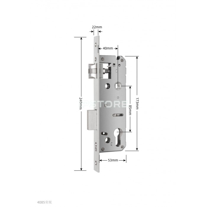 Врезная часть: Вх240 мм Гх53 мм Шх22 мм, backset 40 мм.