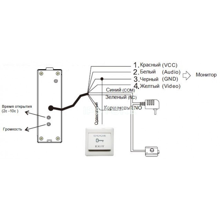 - Полноценное реле для подключения любого типа замка (нормально открытый, нормально закрытый) и кнопки выхода.