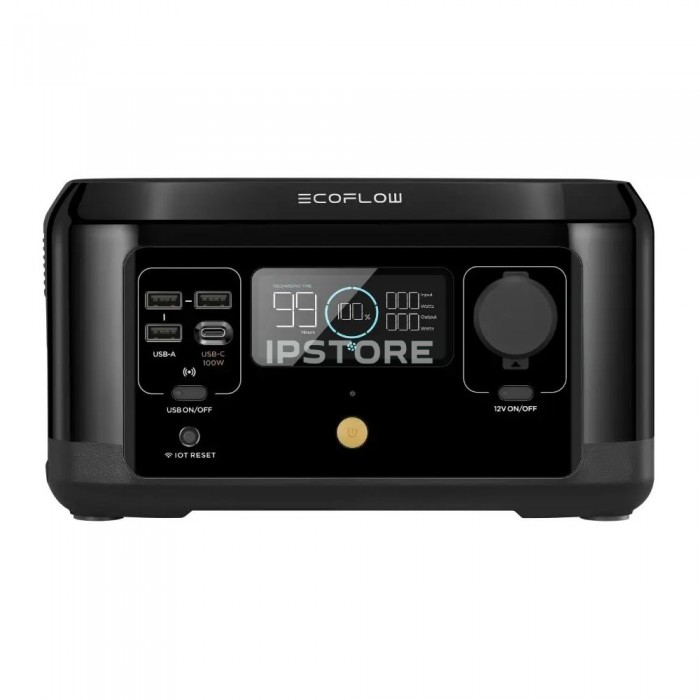 - На LED - панелі River mini є можливість стежити за інформацією про те, на скільки вистачить заряду, яка вихідна потужність на кожний зарядний пристрій або з якою швидкістю відбувається зарядка. Використовуючи додаток від компанії EcoFlow, можна керувати пристроєм дистанційно і вмикати або вимикати порти зарядки на вибір.