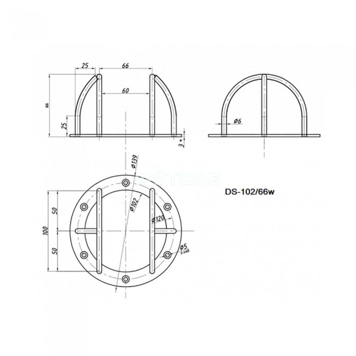 Защитный антивандальный кожух DS-102/66b для купольных видеокамер.