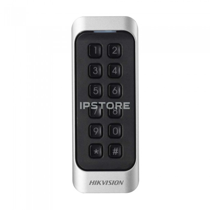 RFID-зчитувач DS-K1107EK з клавіатурою, підтримка карт стандарту EM-Marine. Можливість встановлення всередині і зовні приміщень.